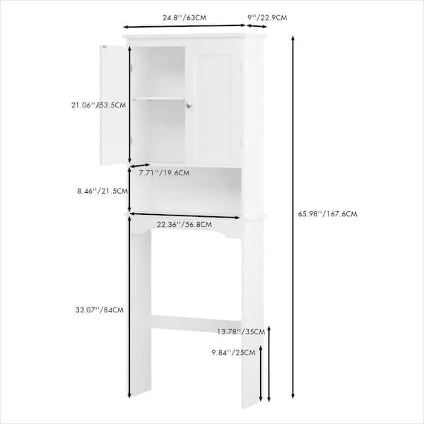 25 in W x 9 in D x 66 in H Wood Ready to Assemble Floor Bath Toilet Storage Cabinet in White with Door and Drawer