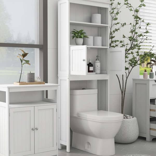 25 in. W x 9 in. D x 70 in. H Wood Rectangular Shelf in White Bathroom Over-the-Toilet Cabinet Storage Organizer Cabinet