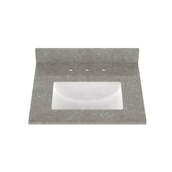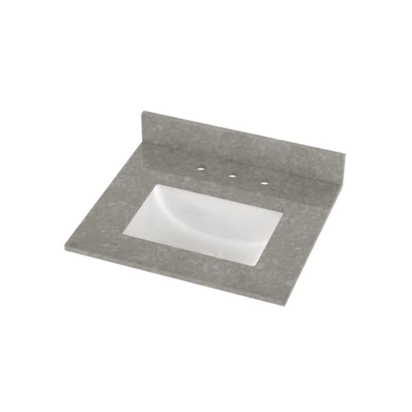 25 in. x 22 in. Qt. Bathroom Vanity Top in Charcoal Gray with Single White Rectangular Ceramic Sink