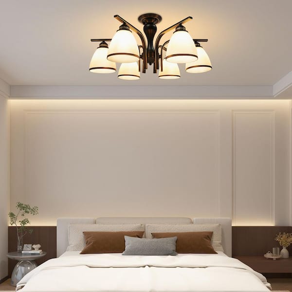 26.7 in. 6-Light Black Modern Chandelier with Glass Shade, No Bulbs Included, for Dining Room, Bedroom, Living Room