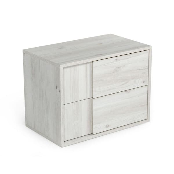 26.75 in. 2-Drawer White Wooden Nightstand
