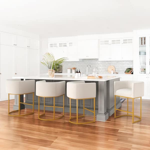 26 in.Beige and Gold Low Back Bar Stool with Metal Frame Counter Height Linen Upholstered Counter Stool Set of 6