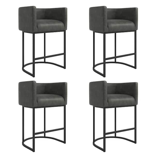 26 in. Black Gray Low Back Bar Stool with Metal Frame Counter Height Faux Leather Upholstered Counter Stool (Set of 4)