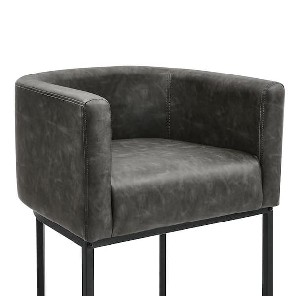 26 in. Black Gray Low Back Bar Stool with Metal Frame Counter Height Faux Leather Upholstered Counter Stool (Set of 6)