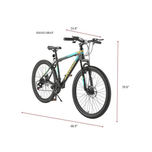 26 in. Gray Mountain Bike Shimano 21 Speeds with Mechanical Disc Brakes, High-Carbon Steel Frame