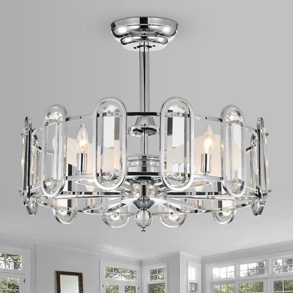 26 in. Smart Indoor Chrome Ceiling Fan with Remote Control 3 Blades Reversible Quiet DC Motor Crystal Chandelier Fan