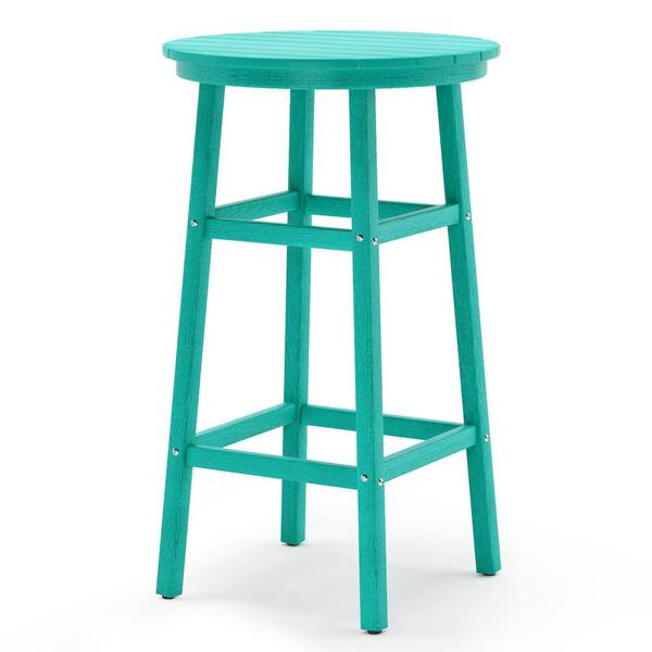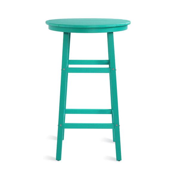 26 in. W Green Turquoise Outdoor Bistro Table Plastic Outdoor Bar Table with Footrest