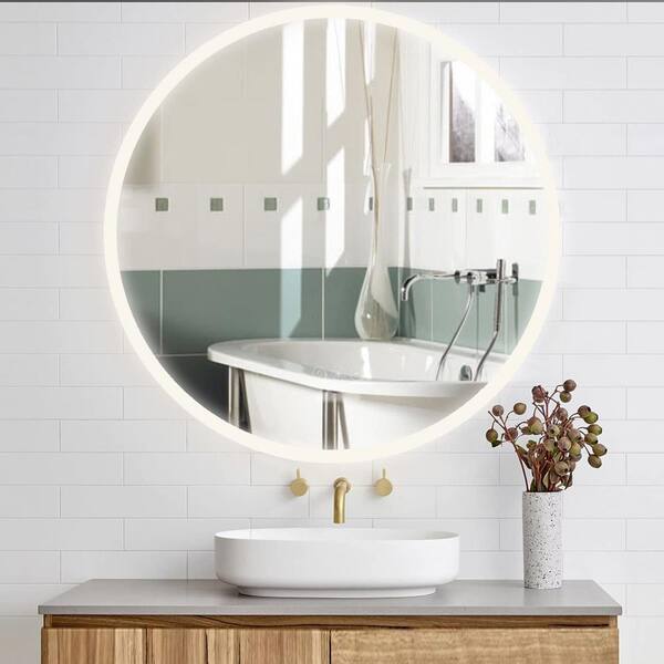 26 in. W x 26 in. H Silver Round Acrylic Framed LED Lighted Wall Bathroom Vanity Mirror for Bathroom Bedroom