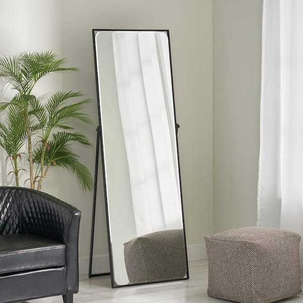 26 in. W x 70 in. H Rectangle Metal Framed Floor Black Mirror for Living Room