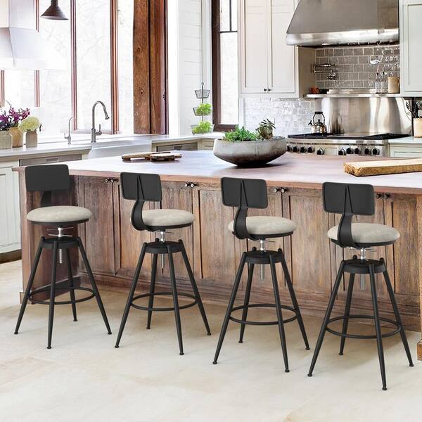 26 in. to 38 in. Leonardo Adjustable Height Light Gray Faux Leather Cushion Metal Leg 360° Swivel Bar Stool (2-Pack)