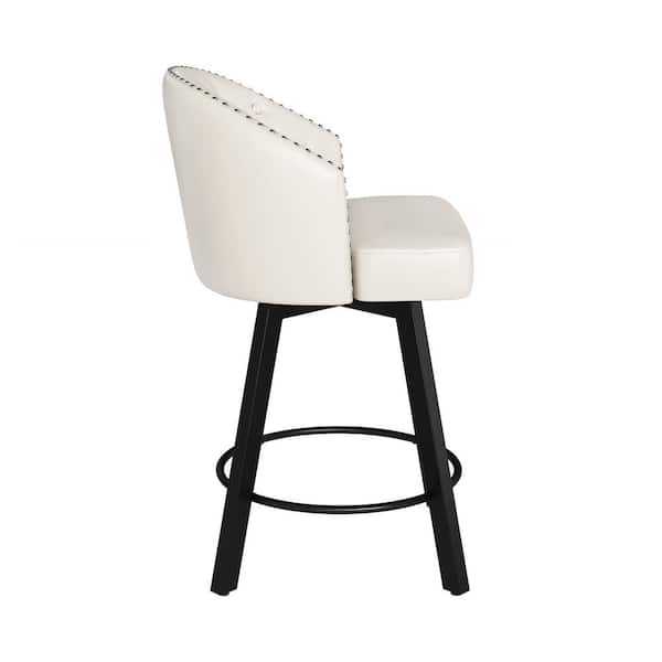 26in. White Faux Leather Upholstered Metal Frame Counter Height Swivel Bar Stools With Bright Silver Rivets (Set of 6)