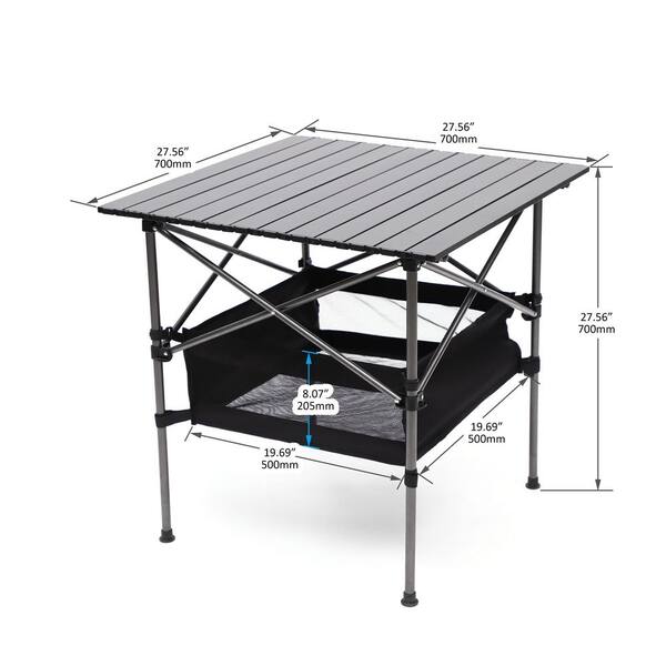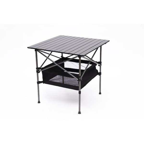 27.56 in. Black Square 1-Piece Lightweight Aluminum Folding Square Table, Picnic Tables with Carrying Bag-Beach, BBQ