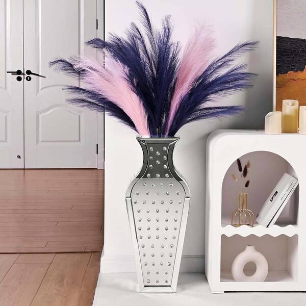 27 in. H Floor Vase Crystal Mirrored Vase Crystal Silver Glass Decorative Mirror Large Vase Decorative Vase