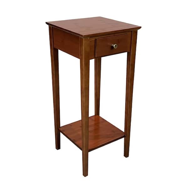 27 in. Mahogany Square Bamboo Indoor Plant Stand with 2-Tiers and Drawer