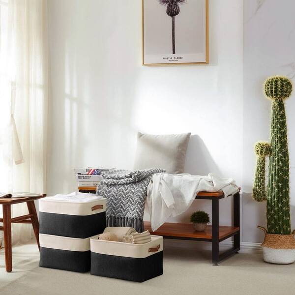 27 qt. Fabric Collapsible Storage Bin with Handles in Black (4-Pack)