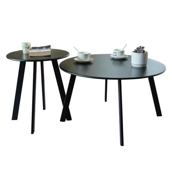 28.17 in. W x 16 in. H Black Round Metal Outdoor Coffee Table Set of 2 for Balcony Patio