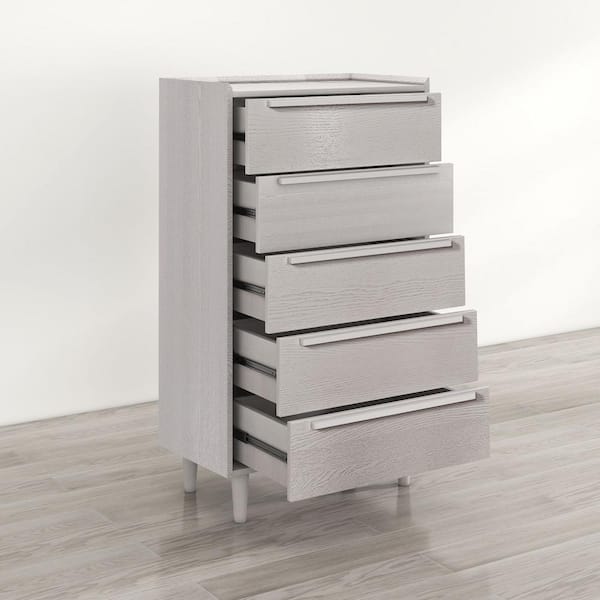 28.7 in. W x 16.9 in. D x 47.2 in. H Stone Gray Wood Linen Cabinet with 5-Drawers for Bedroom