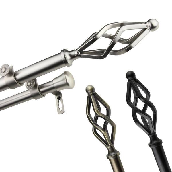 28 in. - 48 in. Adjustable 13/16 in. Double Curtain Rod in Satin Nickel with Cassandra Finials