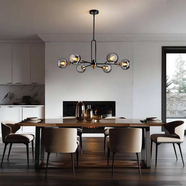 28 in. 6-Light Black Traditional Chandelier with Glass Globe Shades