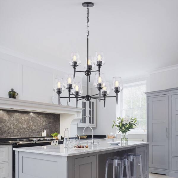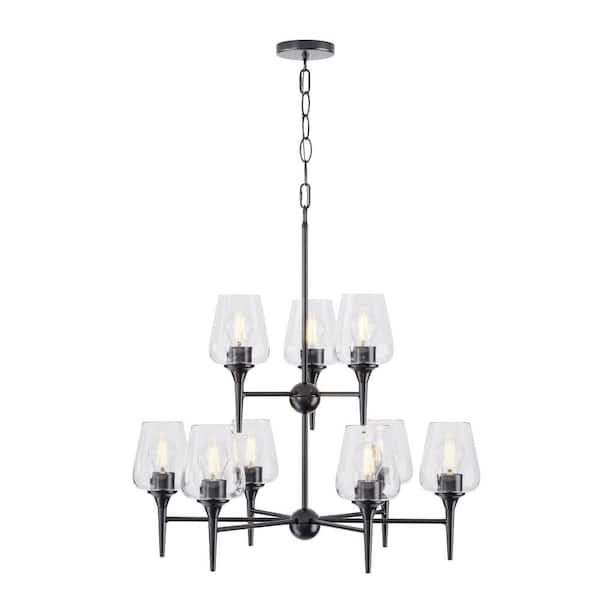 28 in. 9-Light Black Wine Glass Chandelier with Adjustable Height for Bedrooms or Indoor Room