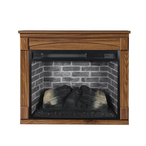28 in. Freestanding Electric Fireplace Heater Mantel with Removable Caster Wheel in Brown
