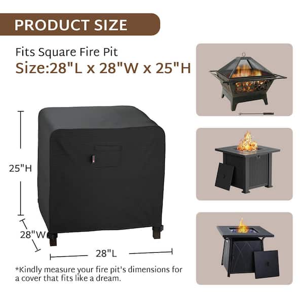 28 in. L x 28in. W Square Fire Pit Cover Outdoor Waterproof and Weatherproof Heavy Duty 600D Patio Fireplace Table Cover