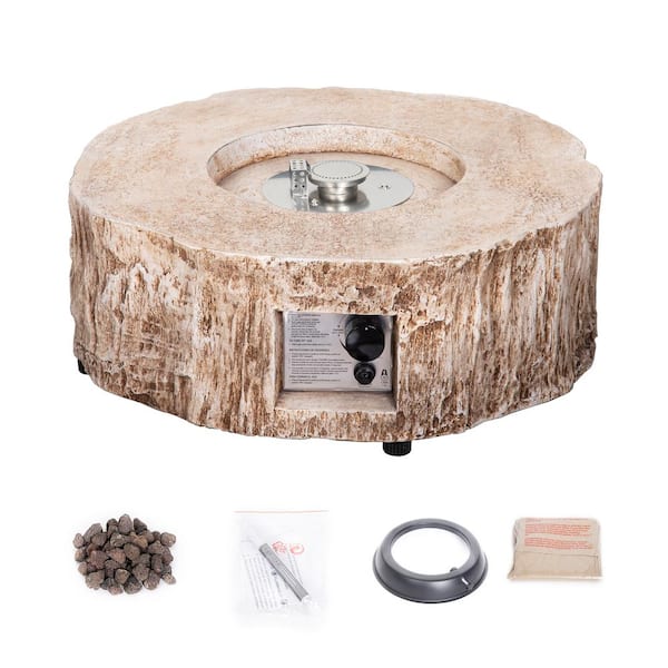 28 in. Ore Powder 30,000 BTU Exterior Faux Stone Propane Fire Pit with Water Proof Cover and Lava Rock Brown
