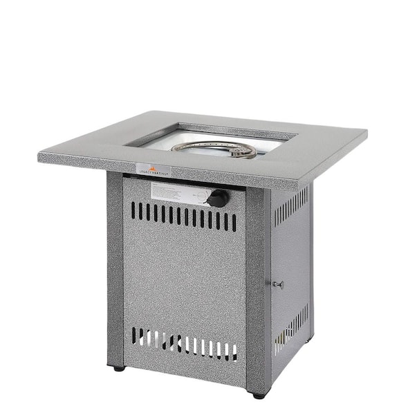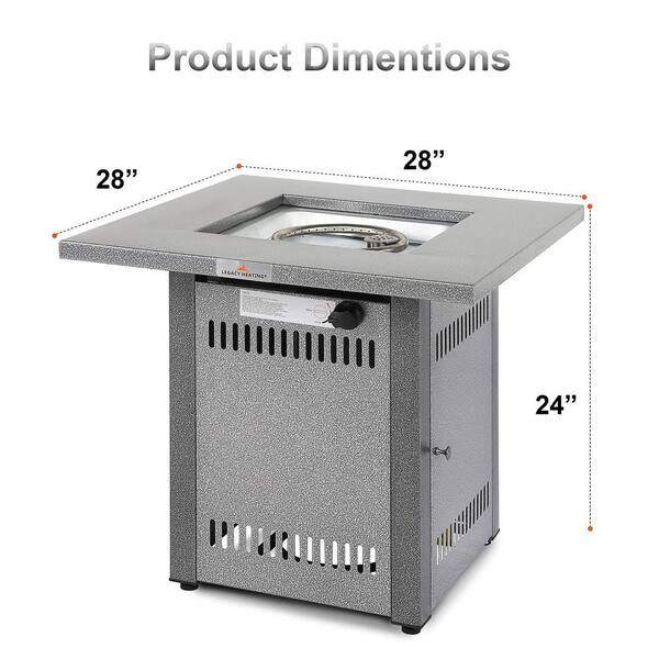 28 in. Square 50,000 BTU Silver Metal Outdoor Propane Gas Fire Pit Table with Lid, Lava Rock for Courtyard, Patio