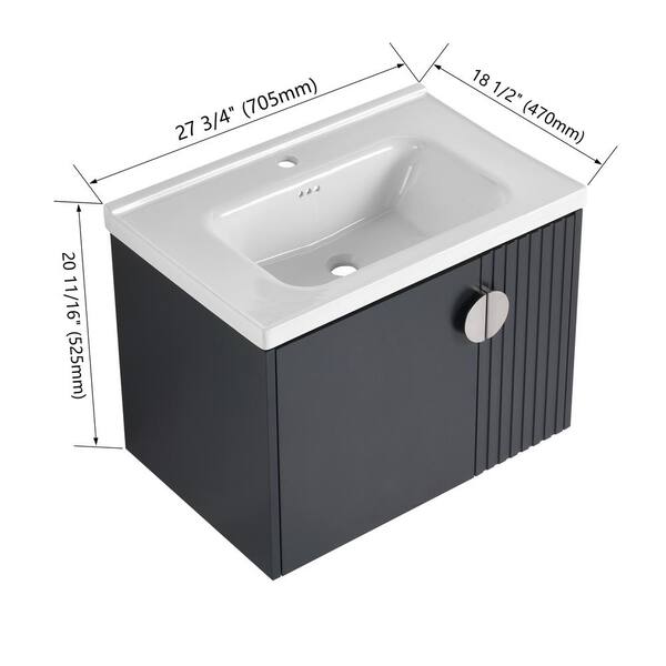 28 in. W x 18.50 in. D x 20.69 in. H Single Sink Wall Mounted Bath Vanity in Black with White Ceramic Top