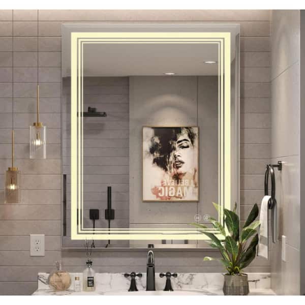 28 in. W x 36 in. H LED Rectangular Frameless Wall Bathroom Vanity Mirror Touch Control in Sliver