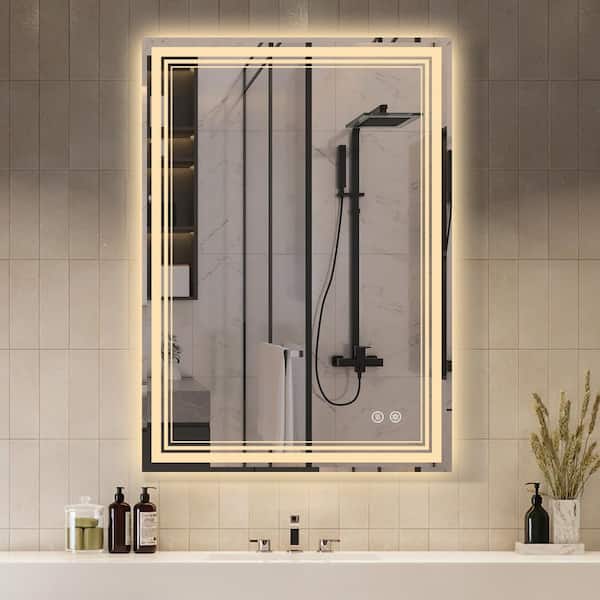 28 in. W x 36 in. H Rectangular Framed Glass Wall Mounted Bathroom Vanity Mirror in Silver