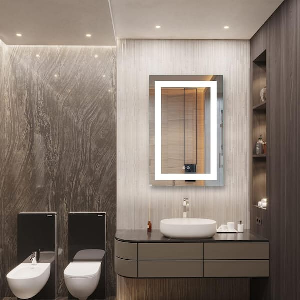 28 in. W x 36 in. H Rectangular Frameless Wall Mount Bathroom Vanity Mirror with LED Light Memory Dimmable Anti-Fog