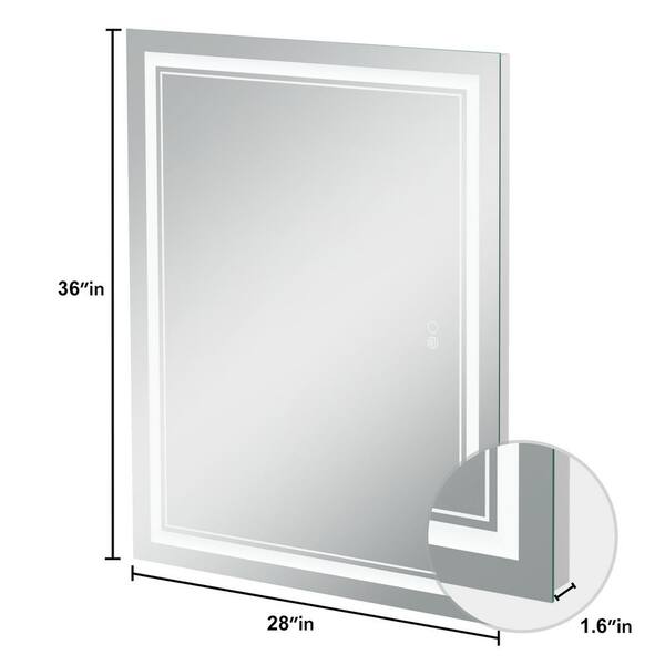 28 in. W x 36 in. H Rectangular Frameless Wall Mount LED Anti Fog Modern Decorative Bathroom Vanity Mirror