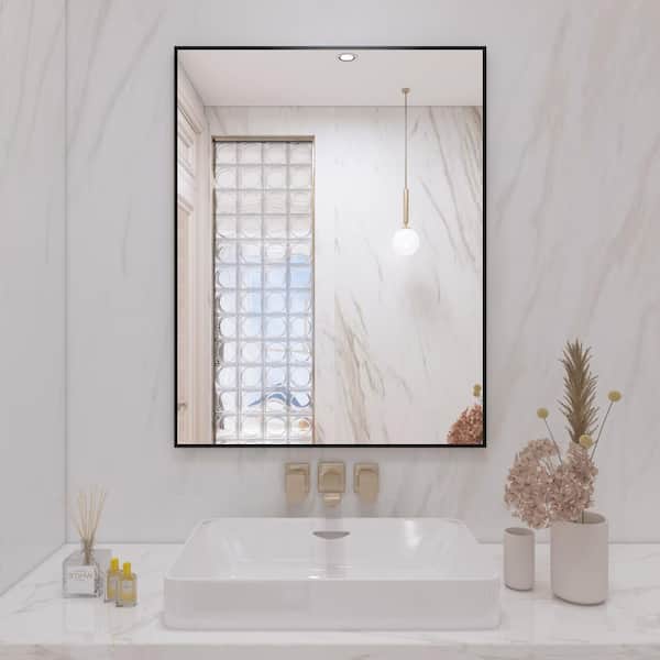 28 in. W x 36 in. H Small Rectangular Right angle Aluminum Alloy Framed Wall Mounted Bathroom Vanity Mirror in Black