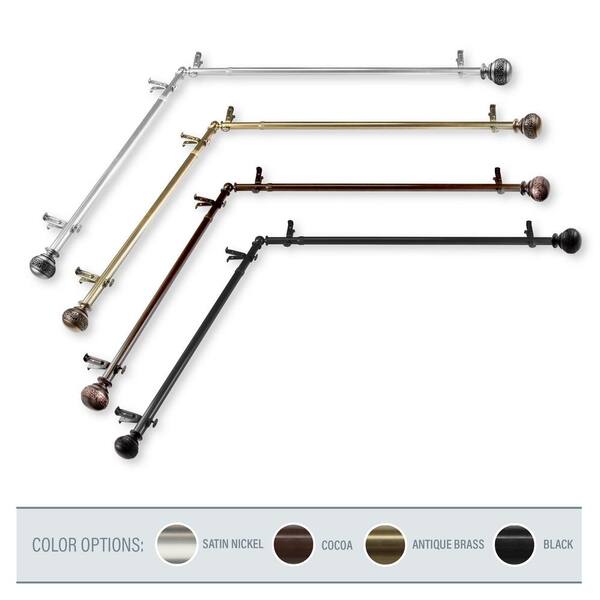 28 in. to 48 in. Adjustable 13/16 in. Corner Window Curtain Rod in Black with Douglas Finials