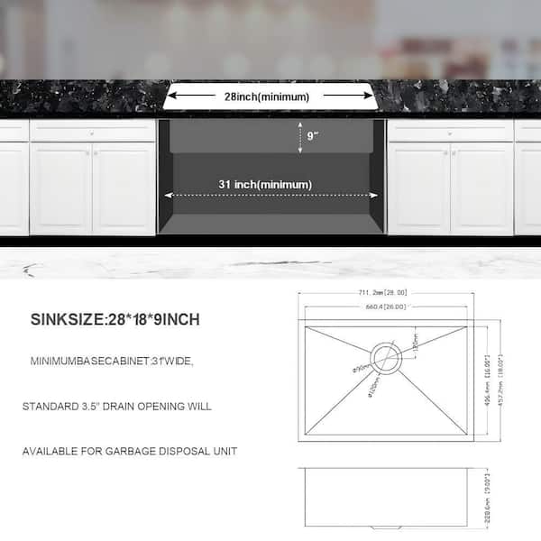28 in. x 18 in. Undermount Kitchen Sink, 16-Gauge Stainless Steel Single Bowl in Brushed Nickel