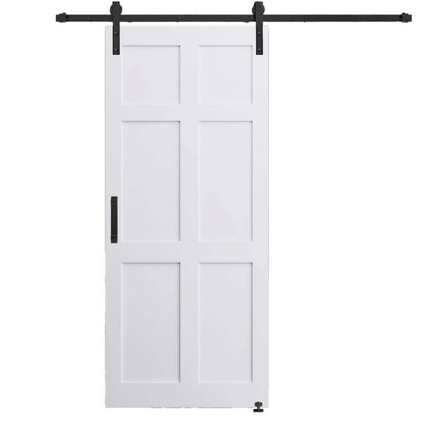 28 in. x 80 in. 6-Paneled White Primed Interior Sliding Barn Door with Hardware Kit, MDF, Barn Door Slab
