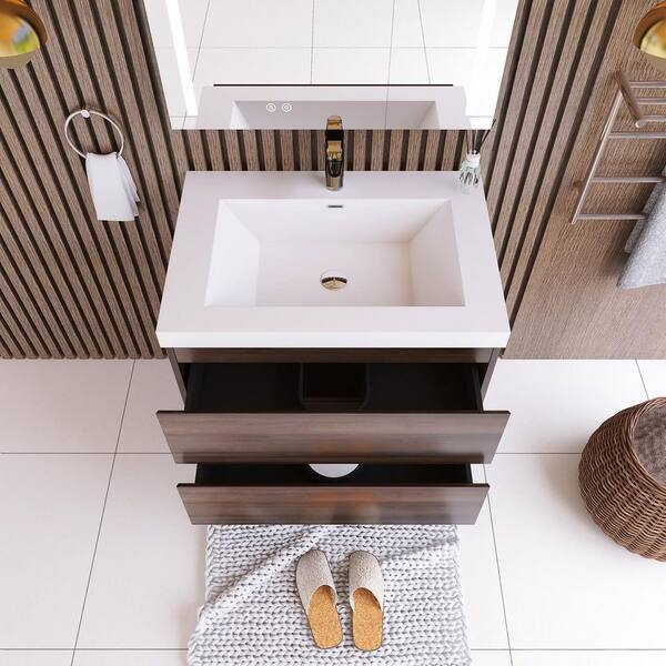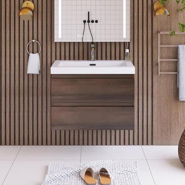 29.5 in. W x 19.7 in. D x 22.5 in. H Single Sink Wall Mounted Bath Vanity in Grey Oak with White Cultured Marble Top