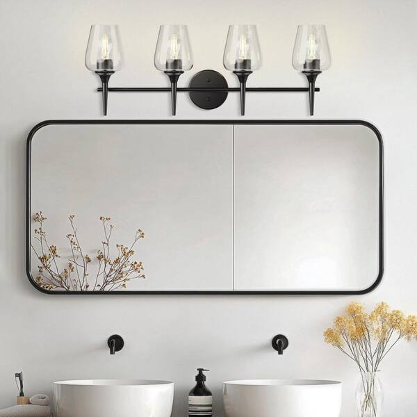 29.63 in. 4-Light Black Vanity Light with Transparent Glass Shades Versatile Up and Down Mounting