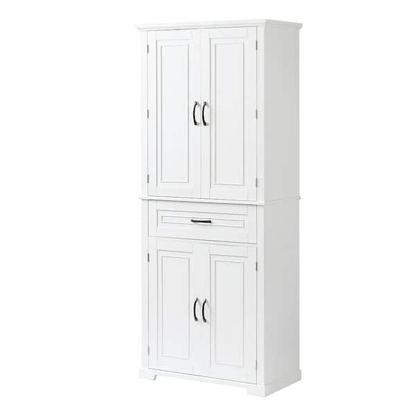 29.90 in. W x 15.70 in. D x 72.20 in. H White Linen Cabinet with Doors and Drawer, Adjustable Shelf