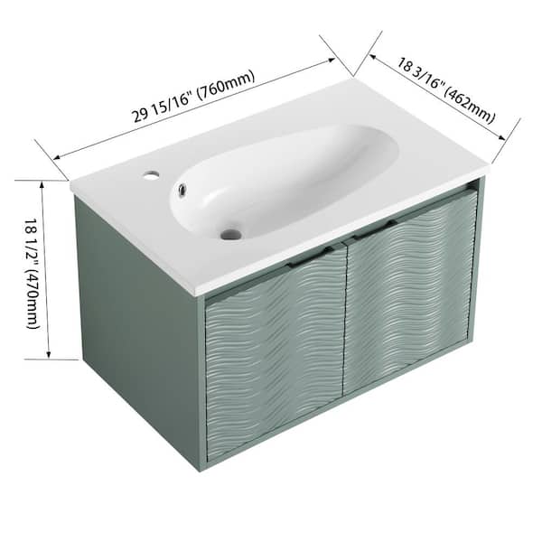 29.93 in. W x 18.18 in. D x 18.5 in. H Single Sink Wall Mounted Bath Vanity in Green with White Resin Top