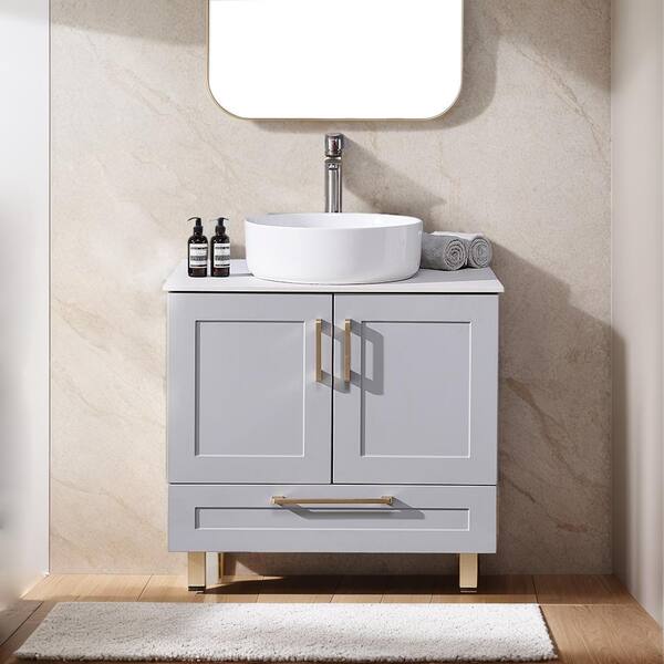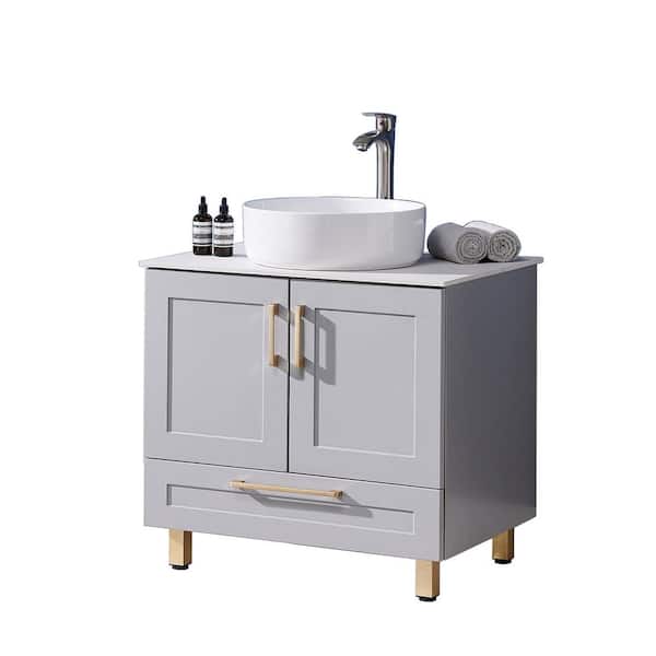 29 in. W x 20 in. D x 32 in. H Single Bathroom Vanity in Gray White Ceramic Vessel Sink and Marble Top