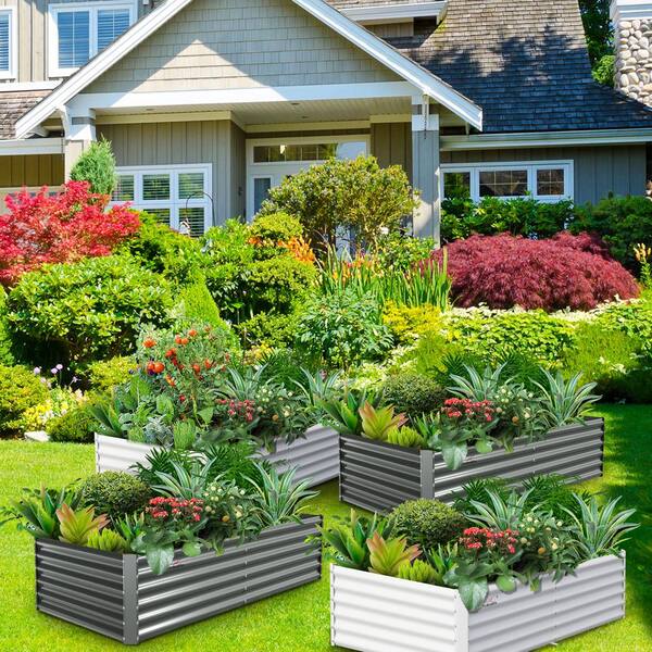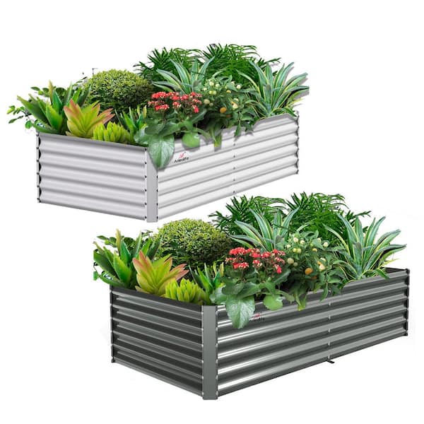 2PCS White Gray Galvanized Steel Rectangular 359 Gal. Outdoor Bottomless Planter Boxes Garden Bed