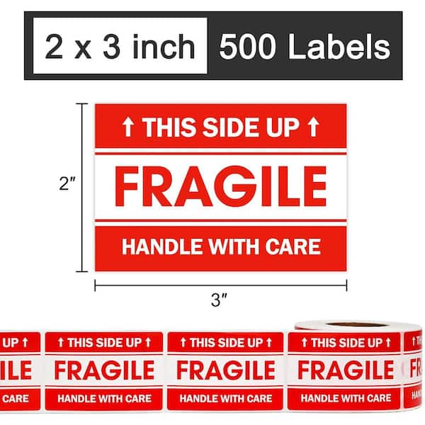 2x 3 Fragile Shipping Stickers 500 Labels Roll Strong Adhesive Handle with Care this Side Up Red