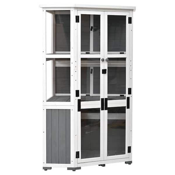 3.1 ft. W x 1.1 ft. D Outdoor Wood Storage Shed with Waterproof-Roof, Lockable Door, Gray (3.41 sq. ft. )