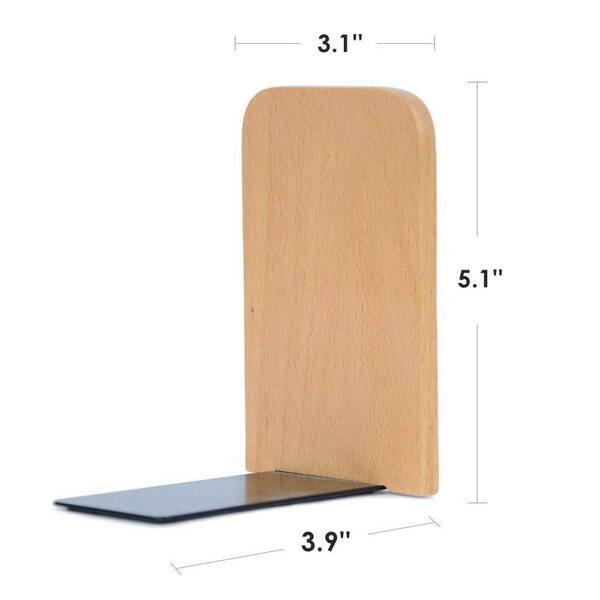 3.1 in. D x 3.9 in. W x 5.1 in. H Wood Bookends Non-Skid Heavy Duty Book Stand for Books/CDs 1 Pair