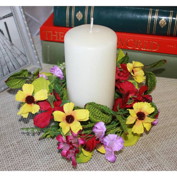 3.25 in. Red and Yellow Pansy Candle Ring (Set of 2)