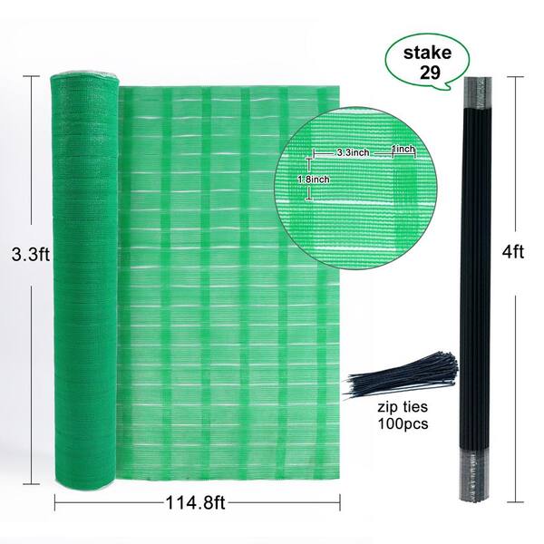3.3 in. x 164.0 ft. Green Construction Snow/Safety/Animal Barrier Fence Warning Barrier Fence with Stake (41-Pack)