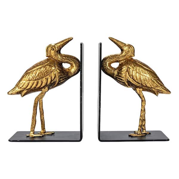 3.5"D x 4.5"W x 6"H Decorative Cast Iron Bird Bookends, Gold, Set of 2