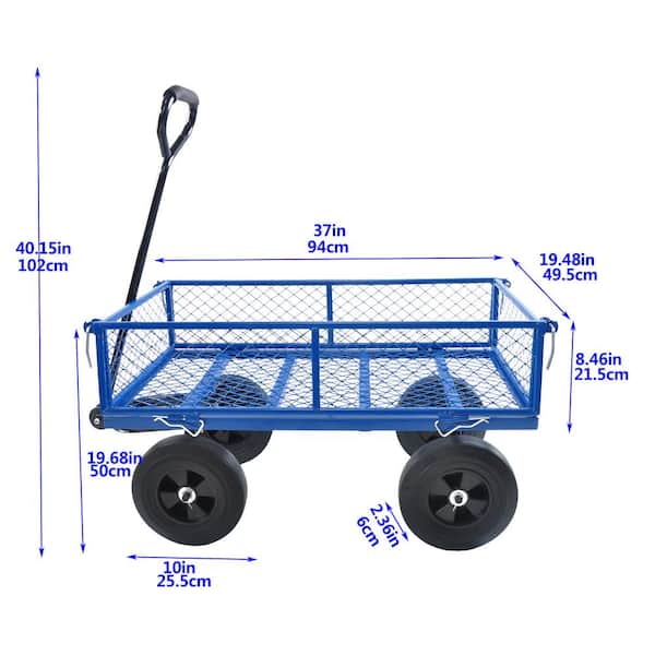 3.5 cu.ft. Mesh Steel Frame Wagon Heavy-Duty Push Garden Cart with Removable Sides for Outdoor Lawn Landscape in Blue